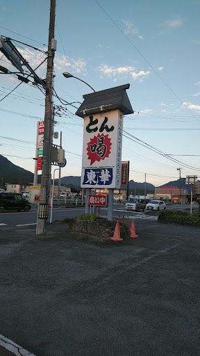 Read moreダジャレ看板が気になったのでちょっと寄ってみました。外観は洋風ですが、中は小上がり有りの和風とんかつ屋さんでした。 大半のメニューが1000円オーバーですが、お値段はとんかつ屋としては普通だと思います。 今回は本日おすすめの「エビフライとヒレカツ定食」を食べてみました。ヒレカツは柔らか、エビはメチャデカで食べ応えがありました。味噌汁は具だくさんです。 店名が付いた「東華ランチ」はメンチカツでした。どちらもボリュームがあり、少食の方は食べきれないかもしれません。 定食の構成はメイン(千切りキャベツ、ポテトサラダ)、ごはん、味噌汁、漬物でした。丼物には味噌汁が付くそうです。 駐車場は広めですが、お店が国道210号線と国道387号線が交差する所にあるのでちょっと出入りしにくかったで...