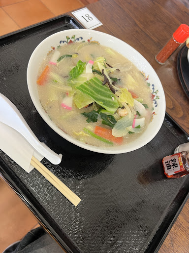 スープは熱々あっさりスープで魚介お野菜のお出汁が染み出してます‼️