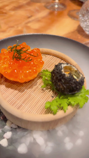 The A4 Wagyu beef was cooked to perfection—tender, rich, and bursting with umami. The signature claypot rice, topped with uni, ikura, and egg yolk, was an indulgent and unforgettable dish. And the caviar and ikura bites, served on a misty platter, added a dramatic and luxurious touch.
