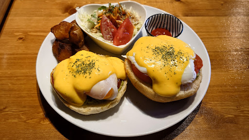 A vegetarian, kids friendly small restaurant where you can take your dog in. I've passed by this place multiple times and today I finally decided to check it out. The inside space is much bigger than I thought. Staff can speak English. The whole place looks very delightful, well decorated. I ordered avocado eggs benedicts, which is of the average price level of Niseko, but surprisingly of a very big amount with roasted potatoes and salad as side dishes. (It would be nice if they could open for breakfast and offer this set with coffee) The roasted potatoes are with crispy shells and soft inside. Very tasty. I also ordered the hojicha milkshake. It has a very refreshing taste. They have a great variety of drinks to choose from. The restaurant also sells some cute biscuits...