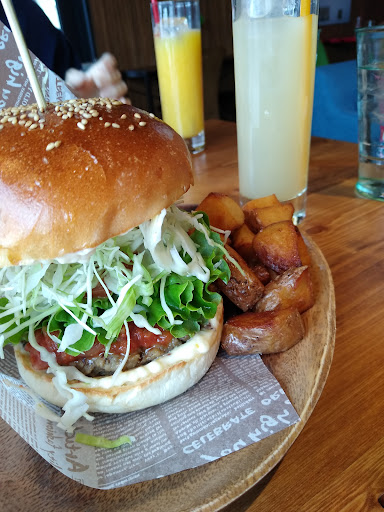 Read moreFunky cafe with a cute interior. The food menu focuses on burgers, the drinks menu covers coffee, smoothies , juices and lots in between. There's indoor and outdoor seating. The indoor seating is a mix of dining and coffee table style. You order and pay at the counter upon entry. I ordered Eggs Benedict, it's one of my favorites. The eggs were perfectly cooked but came served on a burger bun, not on a muffin. It was fine but I wouldn't order it again. The coffee is fantastic, it provides a real...