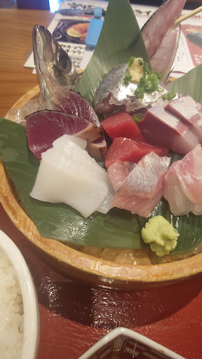 あれから4年後。 今度は、個人的にランチへ赴く。 かなり客がいて結構待ったが、オーダーしたのは刺身五種盛り定食。 マグロ、ブリ、イカ、タイ、アジと言うメジャーどころの刺身にアジフライ、サラダ、あら汁、小鉢(ブリ大根)香の物、ご飯と言う組み合わせで1800円也。 小鉢のブリ大根美味し。ブリがまるでフレークのように凝縮されている。これは一般家庭では作ることの出来ないやつ。 あら汁は、及第点。たぶんタイのあらかな?が入ってたけど、汁にタイっぽさは少なかった。まぁ、不味くはないが、殊更美味いわけでもなかった。 アジフライはちょっと驚き。 前回の爆安飲み放題プランで出て来たおせんべいみたいな貧弱なやつではない。 フルサイズのアジ、で、厚みも十分。アジの旨味だけあって臭みゼロ。こういうのだよ、これだよ。ソース無しで旨いやつ、これだよ。 肝心の刺身は定番のネタだったが、ネタそのものの鮮度が良い。 アジは脂がこんもりのっていて甘い。臭み無し、アジっぽさ無し、甘くてフレッシュ。美味い。 タイは想像通り。美味い。 ブリは脂臭さが無い、と言うか、脂が美味い。よく見るとサシが入ってるくらい脂乗ってるけど、コレが美味い。鮮度は高い様子。 マグロも鮮度が高い。ギラついている。切り身が垂直に立っている。これまた、美味い。 なんだよ、出来てるじゃんかよ。
