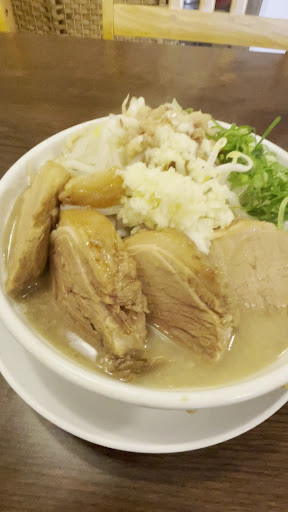 大豚ラーメン(豚マシ)(1,180円)を食す。 三重県桑名市の桑名駅から歩いて5分くらいの離れた場所にある町中華のお店。 ランチ営業で二郎系を始めたとのことで初訪問。 注文方法は二郎系ラーメン店と違い、席にオーダーを取りに来た時に ①ニンニクの量(抜き、少し、標準、マシ) ②野菜の量(少なめ150g、標準300g、マシ450g、マシマシ600g+100円) ③カラメ(濃い目)、辛あげ玉(いずれも追加無料) も一緒にコールすること。 ※メニューには無いが、常連さんが「アブラマシ」とコールしていたので可能らしいです。 麺はデフォで200g、大盛300g(+120円)もあり、自由にカスタマイズ可能。 まずは野菜。標高は意外と高く、クタよりの柔らかさ。キャベツ比率も高め。 スープは、乳化して濃厚。豚感は強く塩気も強い、カラメにする必要は無いほどの塩梅。 麺は、やや平打ち麺の太麺。本家二郎の半分程度の太さだが、これはこれで良い。デフォで200gだが、みっちり詰まっているので意外と量が多い。 豚は、柔らかくてほろほろ。二郎系のラーメン豚山の豚みたいに柔らかくて厚みもある。塩加減も絶妙。デフォで2枚、大豚で4枚のよう。2枚で十分食べ応えあり。 総じてまとまりが良く食べやすい二郎系ラーメン。 スープの乳化具合から、スープは「大曽根のつづき」、麺と豚は「ラーメン豚山」みたい。 定食もたくさん種類があり、チャーシューエッグ定食やユーリンタルタル定食など、美味しそうなのがいっぱい。 再訪問決定! ランチタイムは、11:00から13:30(LO)。麺メニューを頼むと小ライスが無料で付いてくるのでお得。 駐車場は無いため、近くのコインパーキングへ。 R6.9.6...