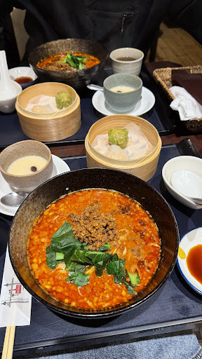 1時過ぎランチで行きました。駐車場は空いてたけど、一組待ち。 海鮮ランチはエビチリでした。 もう見た目が安価なランチの域を越えている。 まず蓮根の桜漬けで準備、これから食事をするに最適な酸味と僅かな甘み、シャキシャキ感で口内をリセット、爽やかでクセは全く無く食べやすい。 小皿は胡麻豆腐を和風な味付で柚子の爽やかさもあり、この一皿でかなりレベル高し。 考えさせられる非日常的で複雑な深い味。 点心にジューシー感はなく、箸休め的。 メインエビチリにはポテサラ、エビせん、ほうれん草がトッピング。 エビチリはしっかり衣があり、もちろんプリップリ、ソースは溶き玉子を施し、よりまとわり付かせ、辛味をまろやかに演出。 このソースをエビせんと楽しんだり… メインプレートは至高の域 そして担々麺にAセット。 かの有名な担々麺… 箸を入れると麺は細目でもしっかりして辛さのパンチ力と共闘する感じか。ミンチ、チンゲン菜も申し分ない量、共に臭味はなく、チンゲン菜もしっかり下処理されシャキシャキだけど、葉スジも歯切れよく食べやすい。 さらに小海老が僅かに… 胡麻の風味より酸味を感じる 辛めの担々麺の店だと辛さをまろやかにするため酢が置いてあるけど、これを店側が最適にしたみたいな感じ? 何にしても酸味に戸惑うも、5口くらい食したら…そんな戸惑いなんて…クセになるジャンキーな味付。 麻辣的な辛味や痺れはなく、まろやかで食べやすく、注意しないと至福の時が一気に終わる。 チンゲン菜も途中途中にホントいい働きをする。 担々麺、色々な口コミあるけど、数多ある担々麺と他店との差別化、確かに酸味が左右するかもしれないけど、これはアリ。 このシェフが作る胡麻や麻辣に特化した担々麺も食べてみたいけど… 他もホントに美味しい。日本人シェフが作るとこういうことみたいな、ここまでがかなりレベル高くて杏仁豆腐の美味しさが鈍化する。 欲言えば鉄観音は全てに欲しい お昼のランチでこんなに味覚が満喫するなんて、ご馳走様でした。 これ...