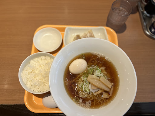 食券を入口で買ってから店に入るスタイルの店。 午後3時ごろに入店。 私は醤油ラーメンにバラ肉のトッピング&ご飯セット180円。 嫁さんは焦がし味噌ラーメン&満足セットたるもの。 ご飯セットとは、ただライスがもらえるだけ。 満足セットたるものは、ご飯に餃子と唐揚げがついてくる。 どちらもご飯は大盛にできるとのことで、私だけは大盛にした。 しかし出てきたご飯はお茶碗に普通に盛ってある程度だった。 普通の量にした嫁さんのご飯は、お茶碗に軽めの量だった。 醤油ラーメンに関しては、申し訳ないが、スーパーで売ってる生ラーメン程度のクオリティだな。と私は思った。まぁ好みに関しては人それぞれなので、あくまでも参考までに。