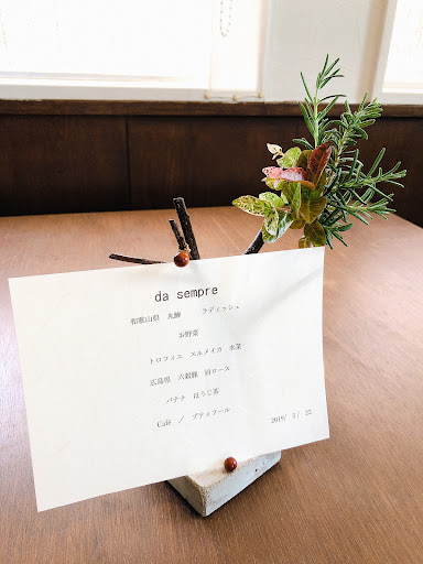 2015年7月にスタートしてはや3年が経過!!4年目に突入の「ダセンプレ」さん!! 自分達のフィルターを通してイタリアン料理をベースに置きながらそれだけには留まらずパスタ・パンetc一つ一つ!!コースの最初から最後まで出来る限り手作りを旨としてまだまだ進化し続けたいとの想いが料理の全てに還元されてまんがナ~(゜∇^d)!!