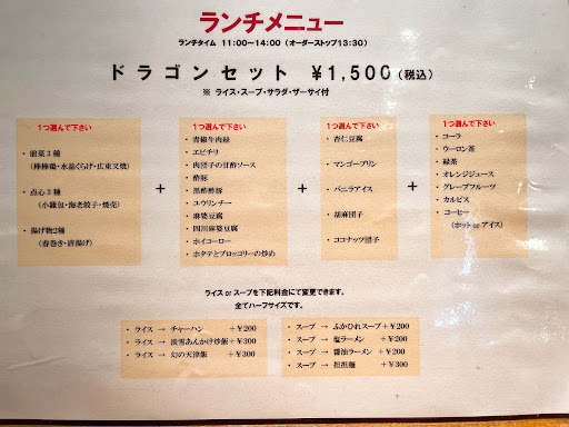 オススメのドラゴン担々麺935円を注文。 その他飯類や点心も充実しています。