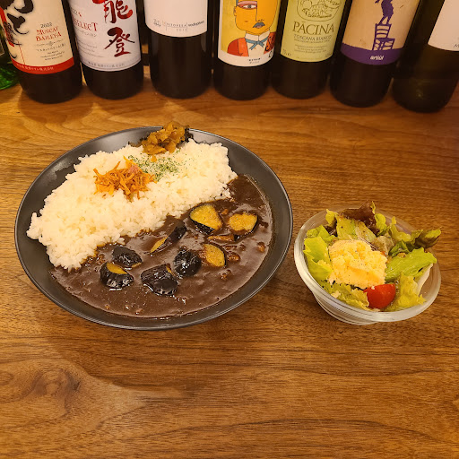 この店のもう一つの名物がカレーというので、その中でも人気No.1だという「7種の野菜が入った焼きカレーセット(1,550円)」を食べてみましょう。 オリジナルブレンドのスパイを使っているというカレーはしっかりとしたスパイス感で香り高く、程よい辛さでファンが多いのも納得できます。野菜はナス、ズッキーニ、タマネギ、オクラ、トマト、レンコン、カボチャと彩り豊かで歯応えも多彩で食べ応え抜群です。