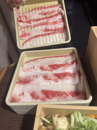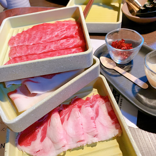 鴨しゃぶが食べたくて初めて行きました。 席は半個室で、夫と二人で多分四人席に通して頂きましたが四人だと少し狭いかと思います。 お肉は一皿に三~四枚程度と一品が少なめなので少人数でも色々と食べられて良いです。野菜やキノコ類がとても美味しくて途中から野菜ばかり追加してました。 お値打ちなプランの為か牛肉はあまり口に合わなかったのですが、鴨や豚は柔らかく臭みも無く沢山頂きました。タンは味のあるお出汁だと本来の味が分からず残念。鴨つくねは少し濃い味付けですが野菜と一緒に食べるととても美味しかったです。 ただ、お隣との壁は薄く上も空いているので、賑やかなお隣さんに当たると会話や注文が困難な程の状態になります。静かに食事だけ楽しむ方には...