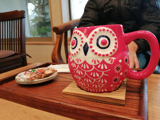 ハーブティーとドイツのパンのセットを頂きましたが、とっても味と香りの良い お茶と、食感と腹持ちの良いパンでした。器もフクロウに拘っていて素敵でしたし、部屋のあちこちにあるフクロウグッズも可愛かったです。 カフェは葬儀で立て込んでいる時はcloseされますので、お電話で確認してから出かけた方が良いですよ!