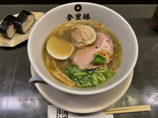 Read moreIt’s a small shop and you order via the vending machine. Seems quite popular with the locals and there was a steady stream of customers. 2 of us ordered the signature clam ramen (1600yen) with egg (150yen) and the shrimp shio ramen (880yen).