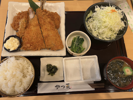 Read more大アジフライ定食をいただきました。 確かに肉厚で実は柔らかふっくら、そして臭みもなく衣はさっくりサクサクでめちゃくちゃ美味しかったです。 お店おすすめの岩塩で食べると鯵の香りが堪能できます。 身が臭くないので揚げた香ばしさも感じられておすすめです。 ソースも美味しかったですが味変程度かな、と。 添えてあるタルタルもおいしいです。 が、塩とタルタルで食べるとさらに旨みが広がります。 もちろんソースとタルタルも美味しいです。