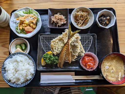 Read more敷地内の駐車場と思しき場所はこの店専用の駐車場ではないとのことですので店裏手の港の駐車場に停める様にした方が良いと思います。 まず記帳して、車を裏手の(グーグルマップだと海水浴場の前にあるアスファルトの場所です。たくさん停められるので問題ないはずです)に移動する、という流れが良いと思います。 店の人もこの辺の説明が曖昧だったのですが、「砂利のところは停めてくれるな」「芝のところは停めてくれるな」「すぐそばの民家のところは停めてくれるな」「すぐそばの空き地は出入りすることもあるから停めてくれるな」色々おっしゃってましたので、店裏手のところに停めとけばなにも問題ないと思います。 (張り紙でも掲示しとけばいいのにね…)。 開店40分前に到着しのんびり待ちました。 開店後は3番手で入店し鋸南定食を頂きました。 柔らかい食感のアジフライが口の中でとろけるようでたまりません。ソース、しょうゆ、トマトソースとありましたが個人的には醤油が一番しっくりくる感じです。 小鉢やサラダもあって楽しくいただけました。 店内はガラス張りなので入店して給仕されても外で待っている方の視線がなーんとなく気になってあまり心地よくなかったですかね。 黄金のアジフライ、いろいろな媒体で紹介されているのをかなり前から認識していたので今回遂に食べるこ...