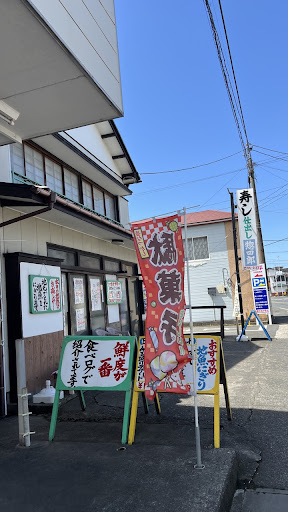 Read more仕事で近くに来たので、昼に入りました。 地魚の寿司を安く食べられる店として有名です。ただ、評価はマチマチですね。 店内はあまり広くなく、海の家みたいな雰囲気でした。席はカウンターと確か小上がりが2つ。カウンターは長椅子で、4人位しか座れません。 握りはセットが2つ。ナメコ蕎麦が付くか付かないかです。私が頼んだのは《Bセット》1250円ですが、腹が減っていたので2人前でお願いしたので2250円です。 此れは口に合う合わないがハッキリする店ですね。先ずシャリがかなり柔らか目で甘いです。私としては、シャリの甘さがネタの味を損なっていると感じました。特に白身は淡白で繊細な味なので、シャリの甘味や酸味が強過ぎると白身の味がボヤけます。柔らかくて口の中で解けないのも残念でした。酸味が強いとのレビューが有りましたので、配合が安定してないのかも。 ネタは鰹以外は全部白身で、金目鯛だけが軽く炙っていました。飽きない様に工夫したりはしていないので、味が単調でした。昆布締め、塩レモン、ポン酢に紅葉おろしと言った味付けを混ぜれば違うのにと思います。シャリの甘味が強いので、白身の繊細な味の違いは楽しめなかったです。 握りが拙いのも気になりました。小さめなのは良いですが、シャリの形が歪で崩れやすいです。ネタも一部ですが、臭いが気になる物が有りました。朝獲れと何日か経た物が混ざっていましたが、鮮度よりも管理の問題かもしれません。 推測ですが、仕事を見るに寿司屋での修行を経ていないのかも。 ナメコ蕎麦は乾麺と市販の汁みたいです。普通。 鯵の味噌汁はインパクトが有りますが、えぐ味が出ていてイマイチでした。同じ鯵なら身を叩いて団子にしてつみれ汁にすれば良いのにと思います。アラで出汁を取って地物の根菜を入れても良いでしょう。房州ワカメやアオサでも美味しい筈です。もう少し工夫が欲しいかなと思いました。 ネタ自体は悪くないです。値段も地魚を提供する店としては安いでしょう。ただ、調理技術を見ると素人仕事が目に付くと言った感じですね。少し勿体ないかなと思いました。 ネタの種類を紙に書いて出してくれるのは良いと思いました。漁の結果によっては光り物も出るのかな?貝類も房州は獲れるので、ネタを白身だけでなく、色々と混ぜれば味わいに変化が出ると思うのですがね。 接客に関しては、他のレビュアーさんが言う程の自慢話しは無かったです。愛想は良かったですね。コバエが居たのは時期的にも仕方ないかなと思いました...