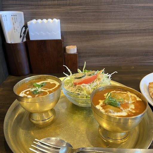 Read more初めて利用しました。平日のディナーだからか店内は空いておりすぐに座れました。 セットメニューを注文した際、サービスでドリンクをつけてくれました。 プレーンナンとチーズナンを注文しましたが、どちらもデカい!でも焼きたてでとても美味しいです。生地自体が甘いのかな?噛むほどに甘みが感じられました。 カレーは1辛と2辛で注文しましたが、スパイスの辛みはあまり強くなく、どちらかと言うと口に入れた瞬間に甘味を強く感じました。 この甘味が食べ進めるうちにどんどん重たく感じられ、折角のおいしいカレーの味や香りを邪魔しているように感じます。 これは一体なんの甘みなのか分かりませんが、ナンも少し甘い、カレーも甘みが強い、ドリンクで頼んだラッシーも甘い飲み物なので口の中がずっと重い甘みが続き、最後まで食べきれませんでした。 この甘みは辛さレベルを上げれば無くなるものなのかも分からず、もし仮にどの辛さレベルでもこの甘みがあるならもう再訪は無いです。 何年か前に別のインドカレー屋さんで食べたカレーにはこんな甘みは感じなかったので、とても不思議な感覚でした。 *2025年7月に再訪* 日曜日のランチタイムに来ました。以前のような強い甘さは感じられませんでしたが、後味に少し甘みを感じたので、これがこちらのお店でのスタンダードなのかもしれません(1辛と2辛両方とも) エビのカレーにはエビが2匹入っており、選べるナンの種類にはプレーンの他にガーリックナンがあったのでそちらを注文。 プレーンナンを注文した連れと交換して食べていましたが、ふとガーリックナンでも食べてみたくなり少し分けてもらいました。カレーを付けて食べて納得!この組み合わせめちゃくちゃ合う! 他のカレーの選べるナンにはガーリックナンは無いのに、このエビのカレーには選択肢として入っていたのはこういう事か!と感動しました。 まだ甘みの残るカレーには少し抵抗感がありますが、以前よりもずっと食べやすかったので、これなら今後...