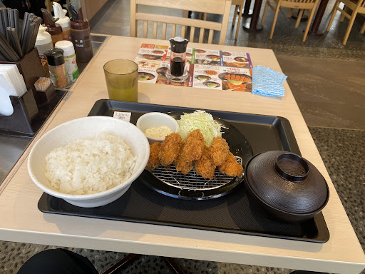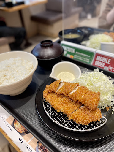 Read more徹底的にコストカットして品物を安くした松屋系列のとんかつ店。 前からあったので、実験店舗の要素が強い。 朝9時から営業をしている。 だが、店舗が多少狭いところが痛い。 定食はご飯と味噌汁のおかわりが出来る。 牡蠣フライは季節限定のメニューです。 カレーライス・カレーうどんはカツを乗せる事を前提に作ってるので、カツ無しで注文すると安いが量や具が少なく感じてしまう。 それと味付けが辛めなので、子供や辛いのが苦手な人には向いてないかも。 あとカレー類の大盛りは不可能。 現時点では素のカレーライスは松屋、素のカレーうどんはうどん店に行った方がいいかも。 カレー類は改良が必要だと思いました。 それとdポイントが対応出来る様にはなった。 反面券売機が一台しかないので、優柔不断な客や機械が苦手な客が来ると待たされて並ぶ羽目になってしまう。 待ちを減らす為に二台に増やして欲しい。