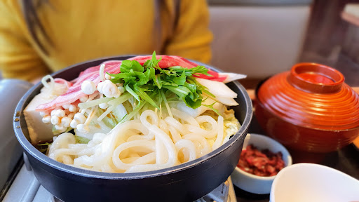This place was much better than expected. Complimentary green tea (where the self serve drinks were). The ten don was really nice and so was the sukiyaki Wagyu beef hotpot. Open till late with comfortable seating. The photos speak...