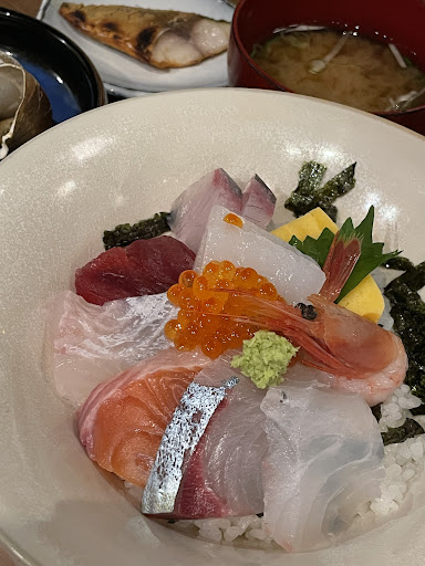 Went in to have dinner late at night. The entire town was dark, but this was the only sign that was lit. Since I don't speak Japanese, the staff was kind enough to help me. I ordered Kaisendon and additionally, I don't remember the exact name, but I had grilled mackerel and shellfish. It was good, but I was disappointed that I couldn't eat Taiza's specialty crab. The waiter told me that crab season starts...