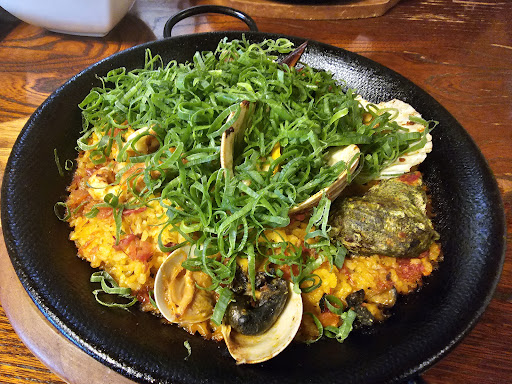 ランチにはサラダと前菜、スープが付き、お洒落で美味しかったです。 旬の岩牡蠣を使った食材も多く、限定のパエリアも具材が豊富でとても美味しかったです。 食後に頂いたデザート(ティラミス、さつまいもジェラート)も甘過ぎなくて美味しかったです。