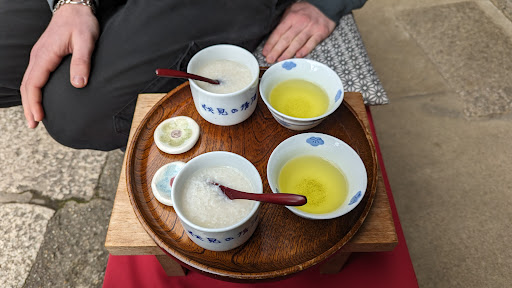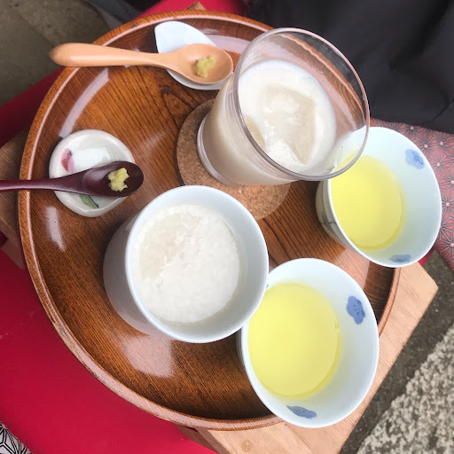 Read moreA must go after you exit the shrine. It’s on the path out but it’s also a little hard to find so I’m adding a video to show that it’s across from a golden statue. Tea house is on the left as you exit. They only serve 1 thing - the fermented rice drink (amazake) for 350 yen plus complimentary tea. The drink is non-alcoholic and is a lovely sweet rice drink. We had it piping hot and it was delicious mixed with ginger.