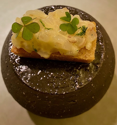 The food, from the freshness of the ingredients to the perfect pairing of sauces, was absolutely exquisite. Even the choice of tableware showed great thoughtfulness. Mr. Takeaki selected an interesting Italian white wine for us, which changed in taste as the temperature and time passed, creating a memorable experience. Mr. Takeaki shared with us the origin of the restaurant's name, their experience during COVID, the unique characteristics of the wines, and the chef's inspirations behind the food. Sometimes, when he couldn't remember certain English words, he would tilt his head and make adorable expressions while trying his best to convey his thoughts.