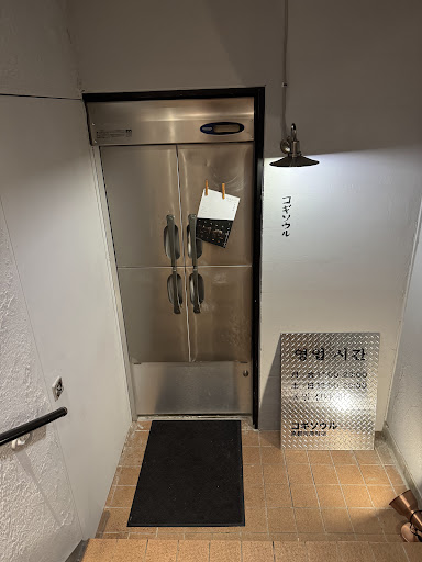 Read moreインスタ等で紹介されており、それに釣られて予約して伺いましたが結論から言えば大ハズレでした。 ビルの地下に降りて怪しげな冷蔵庫のドアみたいな入り口を開けてお店に入ります。 なかなかの雰囲気作りだと思い期待は膨らむのですが、案内された店内は薄暗い上にメニューが小さく老眼世代には読解不能です。 店内にはそこそこの人数の店員さんが居るのですが、どなたも余裕が無く時には通路を走っています。 その上に客の来店やオーダー時には大声での掛け声が店中に鳴り響き、ほぼ会話が出来ない状態です。 勝手が分からずコースを注文したのですが、コース料理のサムギョプサルを焼いている時でも大声で掛け声を叫ぶので、恐らく料理にツバが掛かりまくっていると思い不愉快です。 威勢の良い掛け声がこの店の売りかも知れませんが、物事には限度があると思います。 更にオーダーしてから料理の提供までの時間が遅すぎます。 催促してもなかなか料理が提供されないので、我々はコースの最後のご飯とシャーベットを食べずに店を出ました。 料理の内容を言うと、チョレギサラダはとても塩からい。サムギョプサルの豚肉は固い。チヂミは生焼けの様にブニョっとしています。 入店して席に座るや否や「お一人1ドリンク制」と否応無しに注文させられます。 極め付けは全く説明が無く、会計後レシートを見て初めて分かったのですが、「お通し」が3人で1,050円取られていた事で、お通しの内容は串に刺した5センチほどのキュウリが3本です。 店全体が高校生の運動部みたいで兎に角、「声を出して勢いで店やってる」感が強く、店員さんに質問しても的確な答えが返って来ず全体的にスキルも低いです。 入店時に「2時間以内で」と釘を刺される割には余りにも料理の提供が遅く催促しても「まだ時間が掛かる」との事なので、痺れを切らせてコースのご飯とデザートを食べずに帰ったのですが、その分の返金対応は出来ないとの事。 まぁ、それはこちらが「もういい」と食べずに退店したので100歩譲るにしても、料理の提供時間・従業員のスキル・料理の味・お店の雰囲気とどれを取っても満足出来る点はありませんでした。 正直、どうしてこの店の評価が高いのか私には理解出来ませんし、かなりサクラの口コミがあるのではないかと疑ってしまいます。個人的には2度と...
