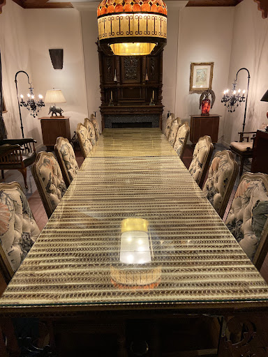 High-concept seasonal cuisine presented in lavishly adorned spaces within a posh abode.
