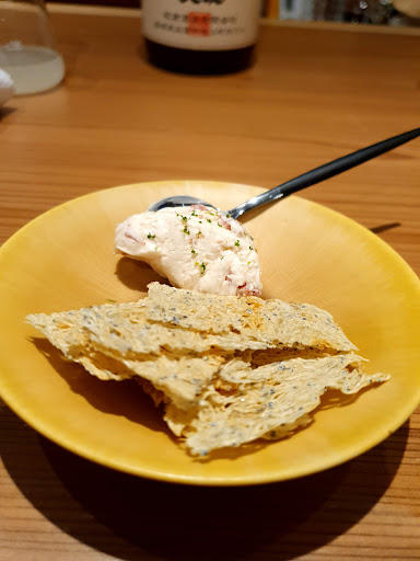 Read more良いお店が出来たと聞いて伺いました。暖簾から想像つかない落ち着いた大きなカウンターの店内。お料理もひと手間もふた手間も加わり絶品でした❢世界各地と関西で修行したご主人が創り出すお料理を頂いていると、ここが中書島と言う事を忘れてしまいます。肝醤油は想像しなかった…鶏レバー好きには外せないひと品。器にもこだわられており、盛り付けも美しい。 日本酒好きなご主人セレクトの日本酒は様々なタイプが揃っており、どんな日本酒好きが伺ってもどストライクの味に出会えると思います。何故なら…メニューに載っていない日本酒が2階に100本あるそうな。「好きなの選んで持ってきて貰って良いですよ〜」と気さくなご主人の人柄に貴方も虜になるはずです(笑) お手洗いは今の時代に珍しい女性用男性用があります。 お休みはInstagramやお店の窓に書かれており...