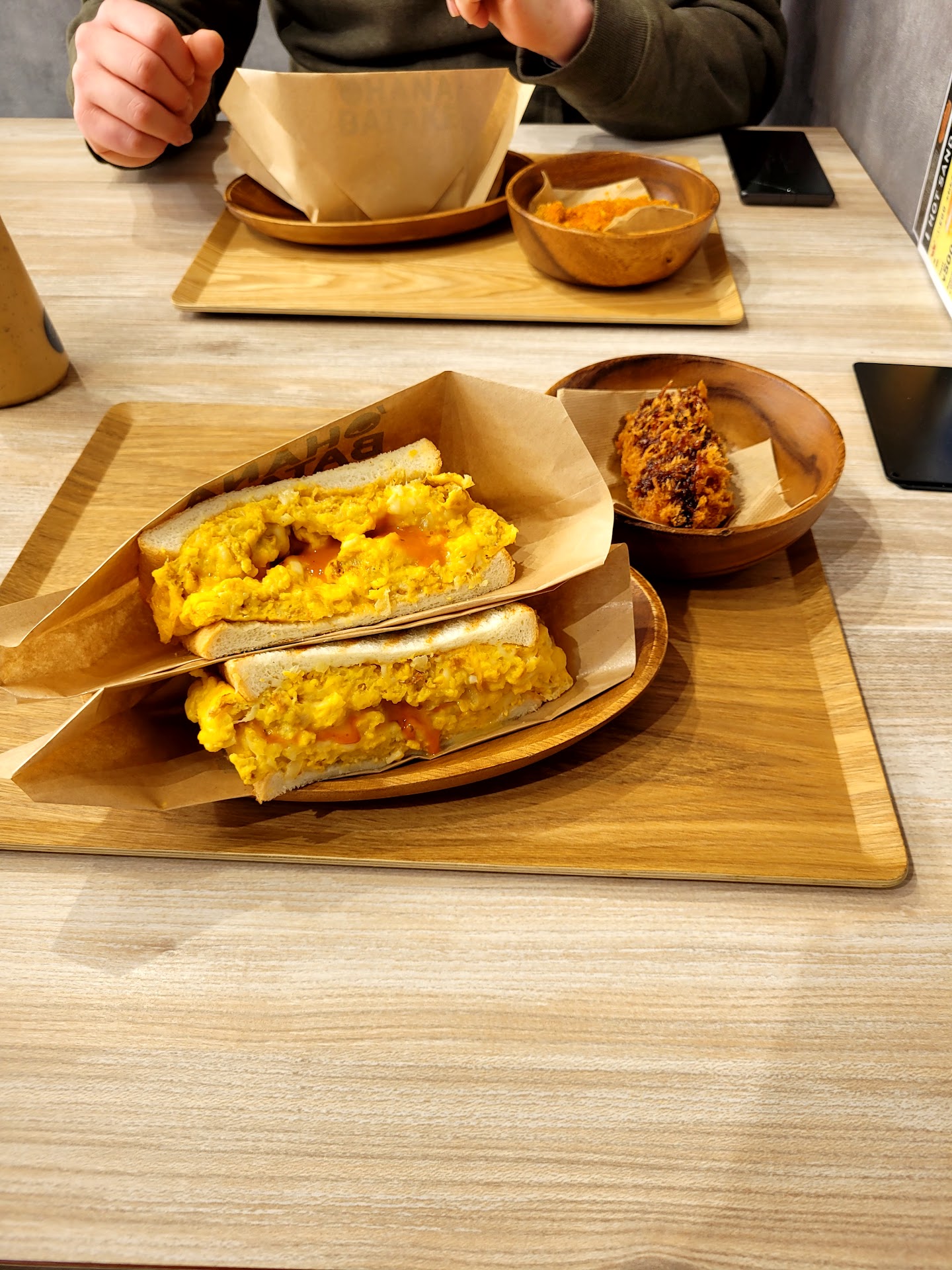 Read morei have never written a review before. the sandwich i had today changed my life. the way that you can order halves of whatever sandwiches you want and try new things…so convenient. i tried the basic egg and then what was essentially a ham egg and cheese. this put every egg sando i have had in japan to shame. i noticed they put bottles of their own original sauce at the table, and i was so excited to try it, but as soon as i bit into the egg sando, i realized it didn’t even need it. it was so intensely flavorful and creamy on its own. the bread is thin enough that it’s not overwhelming the real contents and you don’t fill up on it, but still provides a solid enough structure to hold the pretty messy insides with. the ham egg and cheese was great, but i think i did it a disservice by eating the regular egg (which is STUNNING) first. my life is forever changed. it is deceptively simple. i am breathless. i cannot wait to go back. i am amazed that this place did not have a line...
