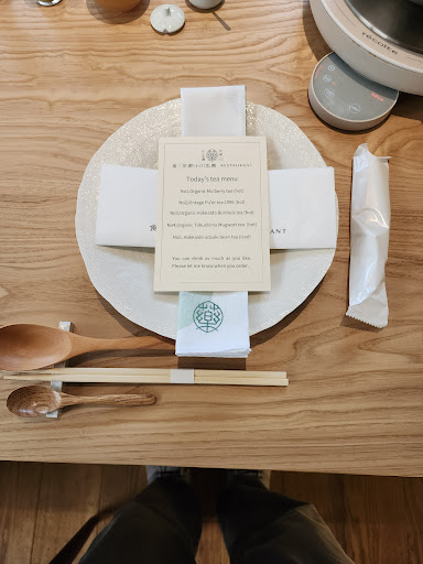 Read moreThis place was really wonderful. All the food is organic, it is a course meal and has multiple teas that people can drink and choose from. We even got some extra goodies like tea, organic citrus sauce, and even a Japanese napkin as a present and gift. There are staff that can speak English present, and all the menus are available also in English as well. I do tours all over Japan, especially for VIP personnel, and this was one of the best experiences I’ve had so far. Furthermore, the first floor is a café that also serves great beverages, and Sell a selection of teas. Not everything is organic, but they are all of incredibly high-quality. I have not had a chance to check the hotel upstairs, which is only Available for one reservation as there is only one room, but I have heard good things about it. I am looking forward to taking people more often to this location, very very highly recommended. Thank you so much to the...