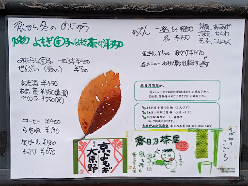 紅葉を愛で、参拝を済ませた帰り、境内に在る茶屋でひと休み 京都の「モネの睡蓮」とも呼ばれている、鯉沢の池のほとりに佇む「春日乃茶屋」 地元産のよもぎを使った、よもぎ団子が名物なんだそうです少し肌寒かったのですが、池の景色と紅葉を愉しみながら、東屋で戴く事にしました