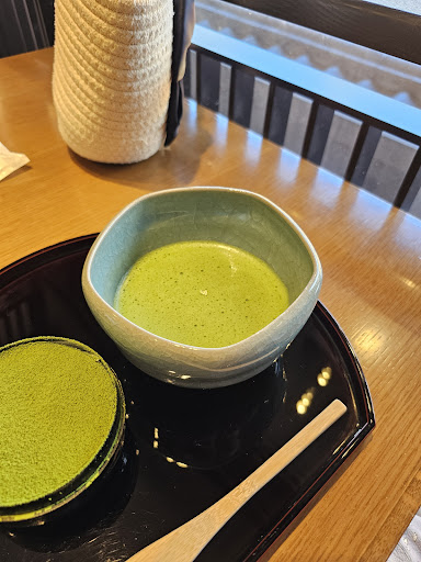 I wanted to try an authentic Kyoto dessert, and this café looked like a nice, quiet escape from the crowded street—so we decided to step in. The café is located on the second floor of a luxury souvenir shop. I ordered a set with matcha and a selected confectionary. I’m not an expert in matcha, but it tasted good to me, and it was served in an adorable bowl. The wagashi also looked delicately crafted and beautifully presented. The souvenir shop downstairs has a lot to explore, from refined crafts to elegant trinkets—but as expected, the prices aren’t cheap. Still, it’s a lovely place to browse or pick up...