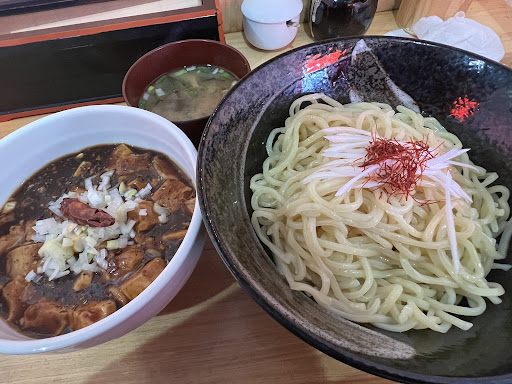 熱々の麻婆豆腐はピリ辛で、にんにくも効いており美味しい。麺リフトをすると湯気で写真がくとるほど。 最初はピリ辛で、それほど辛くないかなと思ってましたが、食べ進めると汗が出てきます。妻のつけ麺もいただきましたが、こちらの方が辛くないでね。