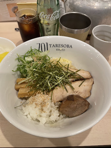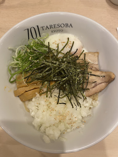 What an exquisite taste of ramen. Thick and moist noodle was so easy to tack in, with the unique taste of vinegar and Japanese mustard..! I was staying in 西洞院 for business/weekend break. In a rainy June night , wandering alone, I just wanted to find a cosy place with tasty food. This was situated at a very bottom of the 食彩ろぉじally where tourists wouldn’t find, so it was even more intriguing to me to explore..! But avoid the 3rd restaurant next to this 701 Taresoba everyone!!! as I was arrogantly refused by the owner and his loyal waitress, as it must be 一見さんお断り, as I am not Kyotonian but looked like a stranger (a Japanese living in UK)! I was so shocked by their attitude but was desperate to find a place to eat before a long day on the following day..! I opened the door of Taresoba worrying if I would be refused again.. but there was warm welcome by the members of staff. I felt like the chef and the waitress saints 😇. Thanks for welcoming me. I will come back with my husband and son in December ! All the...