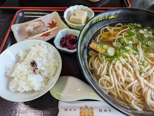We very much enjoyed this peaceful café within the temple complex. We were struggling to find lunch options that were open, not crowded and provided plenty of vegetarian options, so it was a happy coincidence to find this cafe within the temple. The options are limited, but as a typical meat eater this gave me the opportunity to try Yuba for the first time —...