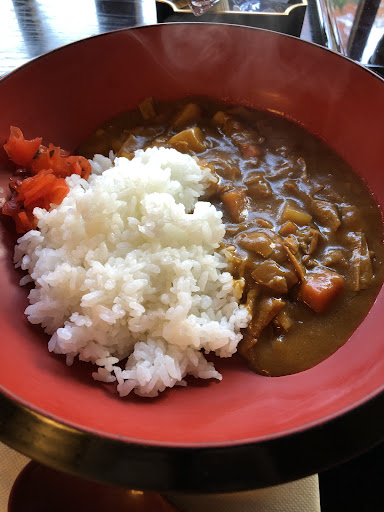 The vegetarian curry with soy leaves was a very nice dish. Rich taste and very good rice. The serve some nice green tea as...