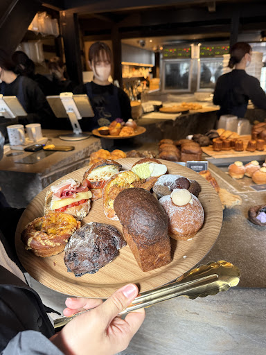 目当てのうち濡れリュスティックは朝1で完売しており、 ピスタチオのクリームパン、カレーパン、生ドーナツ、レアドーナツは11時頃の焼き上がりとのことで断念。 前もって欲しいパンの焼き上がり時刻を調べて、入店までの待ち時間も計算して整理券をもらう必要がありそうです。 地元ならともかく、遠方から来る人にはなかなか難易度が高いと思います。 パンの種類は多様で、ちょっと高級な惣菜・菓子パン多めのラインナップ。近隣でいうとファイブランかslo的。