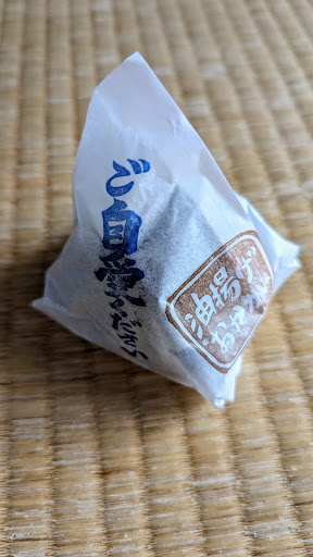 What a tasty onigiri I had here! This petite shop, Ao Onigiri, is not far from Ginkakuji and is easily recognizable by its blue banner. The space inside is narrow, but the owner greeted me kindly. The onigiri were displayed neatly with names in Japanese and English. Though the prices seemed a bit high (around 200 yen each), the unique varieties justified it. I bought five onigiri: salmon, cream cheese tarako, negi miso, nori shoyu, and abura age okaka, plus a side dish of takuan, konyaku, and dashi maki tamago, all for 1380 JPY. I loved the wrapping paper, stamped with fun words like ファイト and おにぎり食べたら大丈夫, and the onigiri type clearly labeled. The onigiri were small but filling, with densely packed rice and generous fillings. After just two, I was full. The side dish was also nice. This shop is definitely recommended. Don't forget to check out their original souvenirs, like tote bags, stickers, and tenugui, located just to the right of the...