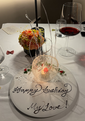 Read moreA Michelin Star is in order for the elegant Arancino Kyoto restaurant where we celebrated my birthday dinner. Italian-Asian fusion cuisine served as a chef's menu which surprised and delighted us at each of the seven courses. The flavors leaned toward the Italian, but the ingredients were local and more typically Japanese. Starting with shrimp tartare & caviar, then a scallop papaya turnip creation ...each small offering was better than the next. The melt-in-your-mouth Wagu beef sirloin qualified as my favorite of the evening - not counting the desserts. Created especially for my day, the sugar glass confection encasing a cake with a candle was spectacular!! Chef Masaki Takahashi was masterful......I HIGHLY recommend a visit...