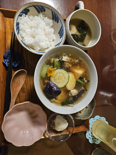 Zum Service: Das Menü ist großteils auf Japanisch, weil es in keiner touristischen Gegend liegt. Die sehr freundliche Bedienung hat uns aber gleich geholfen. Google Lens hat ein Menü falsch übersetzt, weshalb wir geglaubt haben, dass es eine vegetarische Option gibt, was aber dann nicht der Fall war. Die super netten Damen haben mir aber extra etwas zusammengestellt, was auch noch super gut geschmeckt hat. Obwohl wir uns nur mit gebrochenem Englisch unterhalten haben, wurden mein Freund und ich selten so freundlich und aufmerksam bedient wie in diesem Lokal.