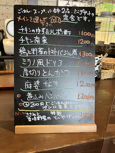 小鉢の味付けが美味しかったです。 玉こんにゃくは噛みきれず、一口で食べる羽目に。 モゴモゴしながら必死に食べたので味の記憶はない。 チキン南蛮は、甘酢ダレにしっかり漬け込まれていながらも、衣が比較的サックリしていた。 しっとりをイメージしてたが、そんな事はなかった。 タルタルソースは手作りと思われる。 マヨ感が強めで、多分ピクルスは入ってない。 個人的にはもうちょいしっとりした衣で甘酢ダレが染み込んだ感じのチキン南蛮に、玉子感が増したタルタルソースを期待していたが、若干違った。 ただ、甘酢ダレの味付けがしっかりしていて、ガツンとした味わいで美味しかったです。 男性でも満足できるはず。 コンソメスープは想像通りの味で、本当に普通だった。 スイーツで、ドーナツの欠片を提供して頂いた。 生クリームと梨のコンポートのようなものが乗っていて、食べてみたがベーグル感が強いのか、甘さもほとんど感じず美味しくなかった。 メインではないので、評価には入れてない。
