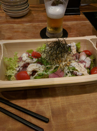 Traditional relaxed izakaya restaurant with bar seating serving up tempura, sashimi, hot pot & more.