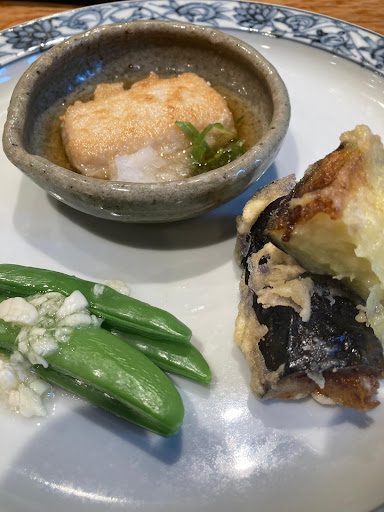Read moreThe “omakase” set is great value. Four courses for Yen 2,500. The starter is fried tofu and tempura zucchini, followed by chicken based soup. Both well balanced and full of complementary flavours. The main course was home-made burger, laced with caramelised onion and rich meat sauce. All washed down with a Sauvignon. We were all very happy and “tongue-in-cheek” asked what was for dessert…. much laughter all round! I had the last laugh when desert and coffee was then served! The decor was avant guard-edgy, with splashes of more rounded, earthy touches and the service was very relaxed, natural, honest and...