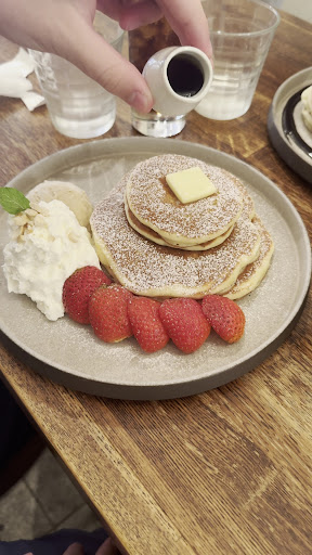 Read moreThe best pancake I've ever had in Kyoto. And I've tried many places! Sure, they are not as fancy looking as those fluffy pancakes you see on social media, but both the texture, the flavor and the consistency are perfect. The cream and the sauce are subtle, but they definitely compliment the pancake base well. They are also very fulfilling, which was welcome after a day walking around Kyoto station. All of that for a very reasonable price, cheaper than many of the more popular pancake cafes in gion or Shijo! The only downside is that it's a little far from Kyoto station but if you're already around for the railway museum or the aquarium, I definitely recommend that you take a break...