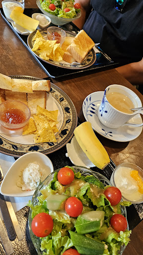 The owner moved us from a 2 seater table to a 4 seater table insisting that it will be more comfortable. When we ordered 1 set, she was surprised ( though there wasn’t a signage stating that there needs to be a minimum order per person). Food was ok. It was an english style breakfast with toast, jam, banana, and salad.