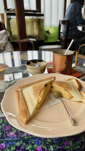 idden next to a quiet Kyoto shrine, this café feels like another world. There’s a small bathtub filled with water plants, tiny fish, shrimp, and even an amphibian resting on a rock—like a miniature ecosystem. The walls are lined with vintage Japanese paintings and nostalgic little items, and the whole space has a quiet elegance that reminded me of peaceful afternoons in my grandparents’ old house.