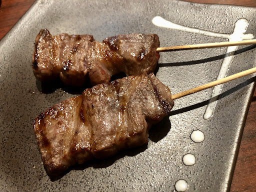 As for the food, we got their more expensive course, but got mostly innards and had maybe two "regular" skewers. Gizzard, heart, liver, skin, sashimi, and soft bone karaage. These can be great when done well, but they were mediocre and the liver was gamey. We ordered momo (thigh) and seseri (neck) separate from the course because of the lack of meat, but they were just okay. We would've ordered others, but things like quail eggs were sold out already 5 hours before closing.