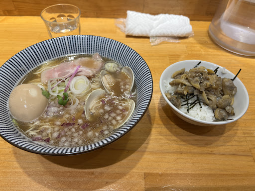 I ordered the clam ramen with clam boiled rice and I was pleasantly surprised with how good it tasted. The seafood soup base was something new to me and it definitely exceeded my expectations. The rice was also cooked perfectly and complemented the ramen well. I must say, it was a truly fulfilling meal and the price of 1300 yen was quite reasonable considering the quality of the food.