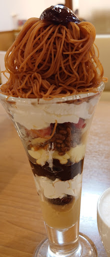 モンブランパフェについて、写真や説明文とは違う順番で盛り付けられていました。 私もカラオケスタッフとしてパフェを作っていたことがありますが、材料が同じでも口に入る順番や混ざり方が違うと味が異なるのでそれはもう別の食べ物です。ありえないです。ファミレスなんだからレシピ通りに作ってください。 私は自宅でも趣味でパフェを作るので参考にしたくて一層ずつ確認したから気付きましたが、口コミに書かれていなくても気付いていないだけで他にもこういうことがあったのではと思います。 カトラリーも、触る前からガムシロか何か粘性の高い液体がべっとり付いたものが目視できる状態でパフェ用に出されて、交換してもらいました。