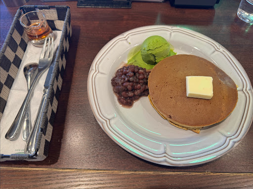 Read moreThis place definitely tries to cater for foreigners. I ordered the hotcakes set which included a boiled egg and choice of hot or iced coffee. I waited over 30 minutes for the food after being told it would be 10 minutes for the hotcakes to cook, the restaurant was not that busy there were multiple open tables so it should not have taken that long. The hotcakes were not good the edges were hard and I could tell they had been sitting for a while. Pretty close to subpar american style pancakes but worse than you would find at iHop. The egg was boiled too long and the yolk was chalky and not appealing looking. The coffee was a highlight, it was very strong and made using an interesting technique of upwards siphoning the water into a container full of grounds. I would not recommend this place to any foreign tourists, the cost of 1020 yen is not worth the quality. There are better...